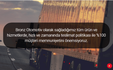 Bronz Otomotiv olarak sağladığımız tüm ürün ve hizmetlerde, hızlı ve zamanında teslimat politikası ile %100 müşteri...