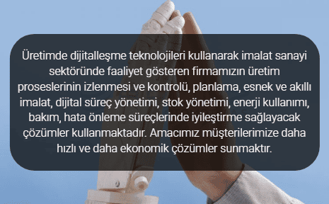 Üretimde dijitalleşme teknolojileri kullanarak imalat sanayi sektöründe faaliyet gösteren firmamızın üretim...