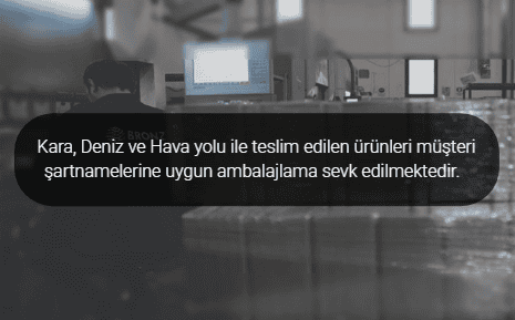 Kara, Deniz ve Hava yolu ile teslim edilen ürünleri müşteri şartnamelerine uygun ambalajlama sevk edilmektedir.