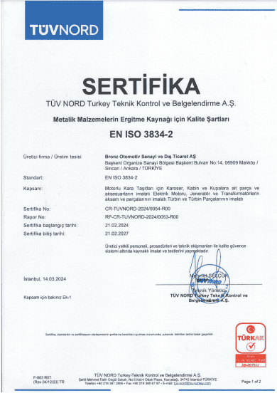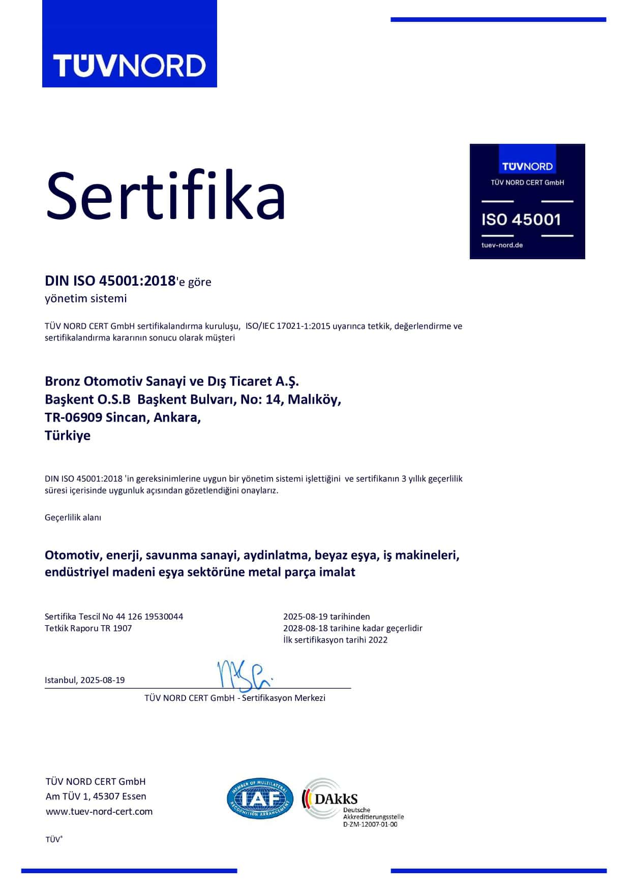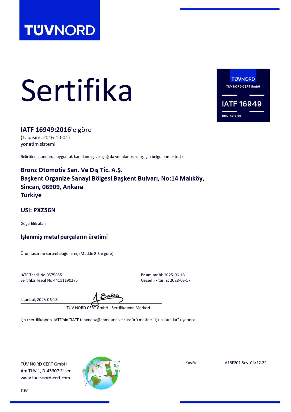 BRONZ OTOMOTİV, kalite politikasını; IATF 16949-2016, ISO 9001-2015 Kalite, ISO 14001 Çevre ve ISO 45001 İş Sağlığı ve Güvenliği Entegre Yönetim Sistemini benimsemiş, aşağıda belirtilen politikaları oluşturmuştur.
